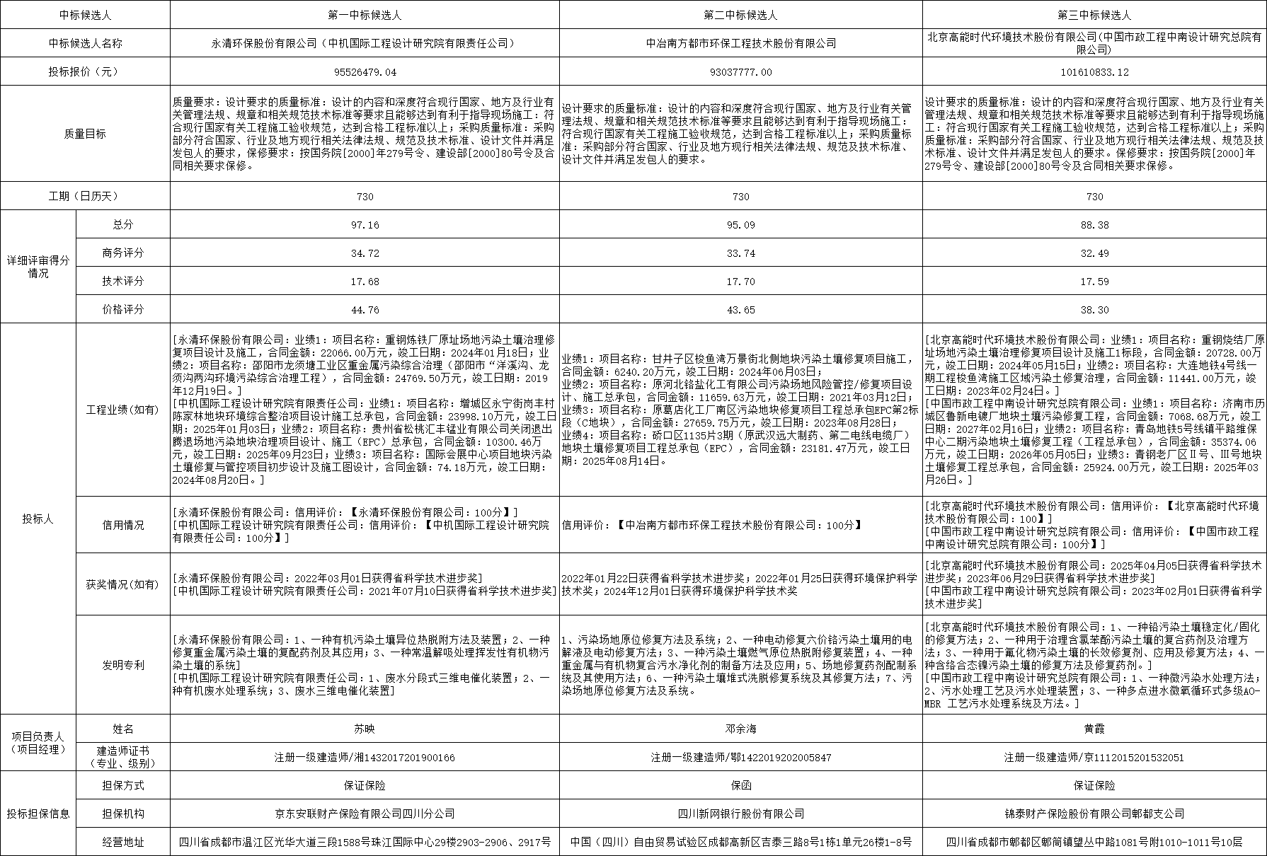 湖南博信工程项目管理有限公司受花垣国晟资产经营有限公司的委托,代理“锰三角”花垣县民乐镇片区电解金属锰企业腾退场地土壤污染治理项目工程施工招标,2025年11月27日09时00分(北京时间)在湘西土家族苗族自治州公共资源交易中心进行了公开开标,在湖南省·湘西土家族苗族自治州·花垣县·湘西州花垣县发改局监督下,依法组建的评标委员会按照招标文件确定的评标原则和评标办法进行了细致的评审,并推荐本项目中标候选人排名如下: