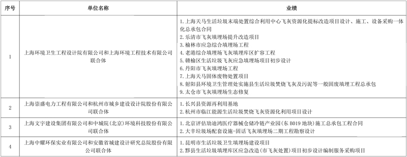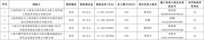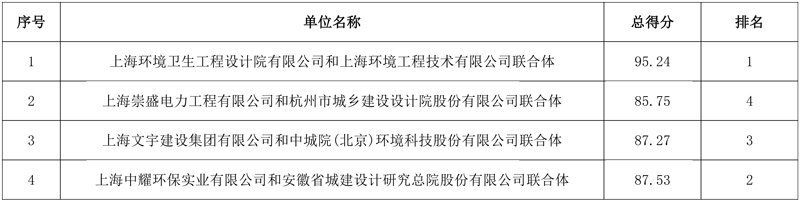 第一中标候选人:上海环境卫生工程设计院有限公司和上海环境工程技术有限公司联合体;