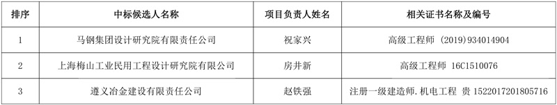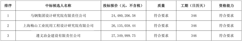 第一中标候选人:马钢集团设计研究院有限责任公司,投标报价:24480206.58元;