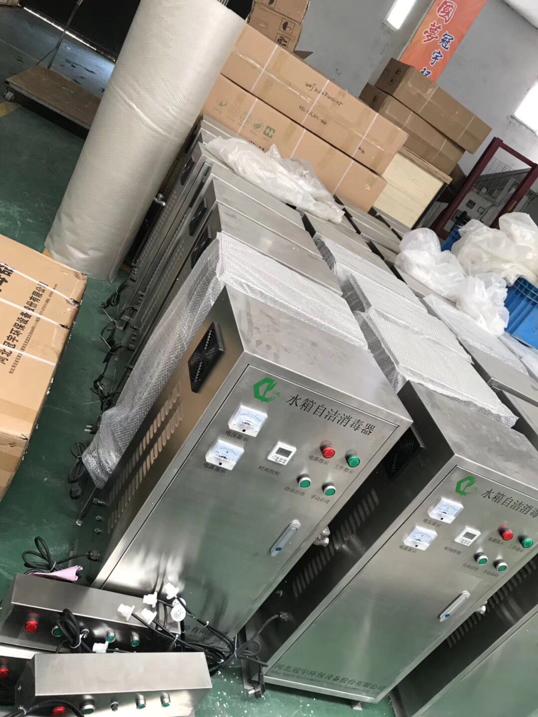水箱自洁消毒器利用氧气或空气通过高频高压电场转化为臭氧,臭氧充分与水混合,以达到杀灭水中病毒、细菌、微生物等有害物质。