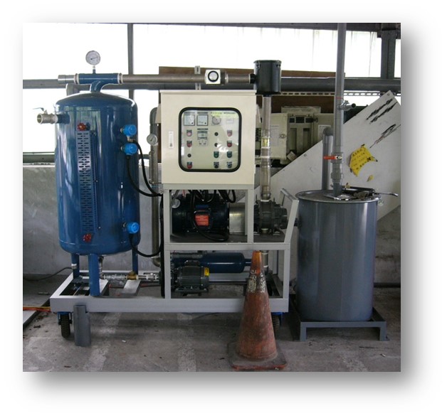 本套土壤气体抽除设备适合应用于原位污染修复技术之土壤气体抽除法(SVE)及双帮浦双相抽除处理法(DPE)。该修复技术中主要系利用本设备真空抽气能力抽除土壤气体,使存在于土壤中之污染物由固相或液相转为气相产生挥发作用,并因抽气造成地下环境形成负压,驱使污染物向抽气井方向集中而被抽出.
