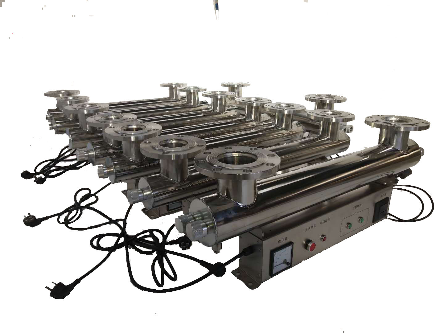 管道式紫外线杀菌器是是一种纯物理工艺的水处理杀菌装置,它反应时间短,杀菌速度快,同时,频率在20KZH以上的超声波能够彻底清除干净的清洗紫外线石英套管,防止石英管外壁在高盐度,高硬度水中结垢,长期保持石英套管良好的透光率和紫外线灯的杀菌率,紫外线杀菌器不使用化学添加剂,不产生二次污染,是一种高效率经济、快速、环保、绿色的广谱水处理杀菌装置。