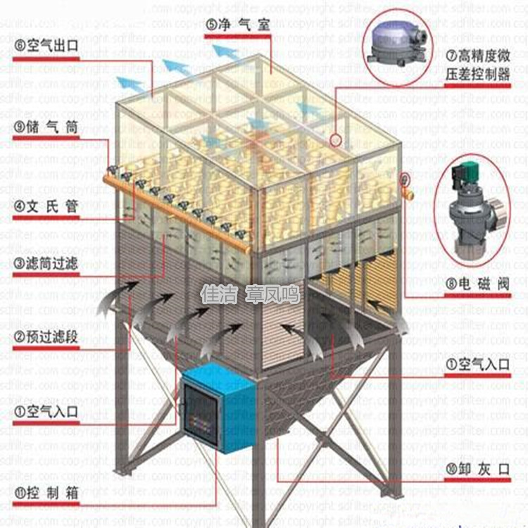 滤筒采用美g,HV滤芯、滤芯材质为复合纤维,滤筒采取折褶结构,结构紧凑,过滤面积大,拥y较大的容尘量以及良好的透气度。且延伸率小,堵塞系数小,过滤阻力低,过滤j度高,使用寿m长。