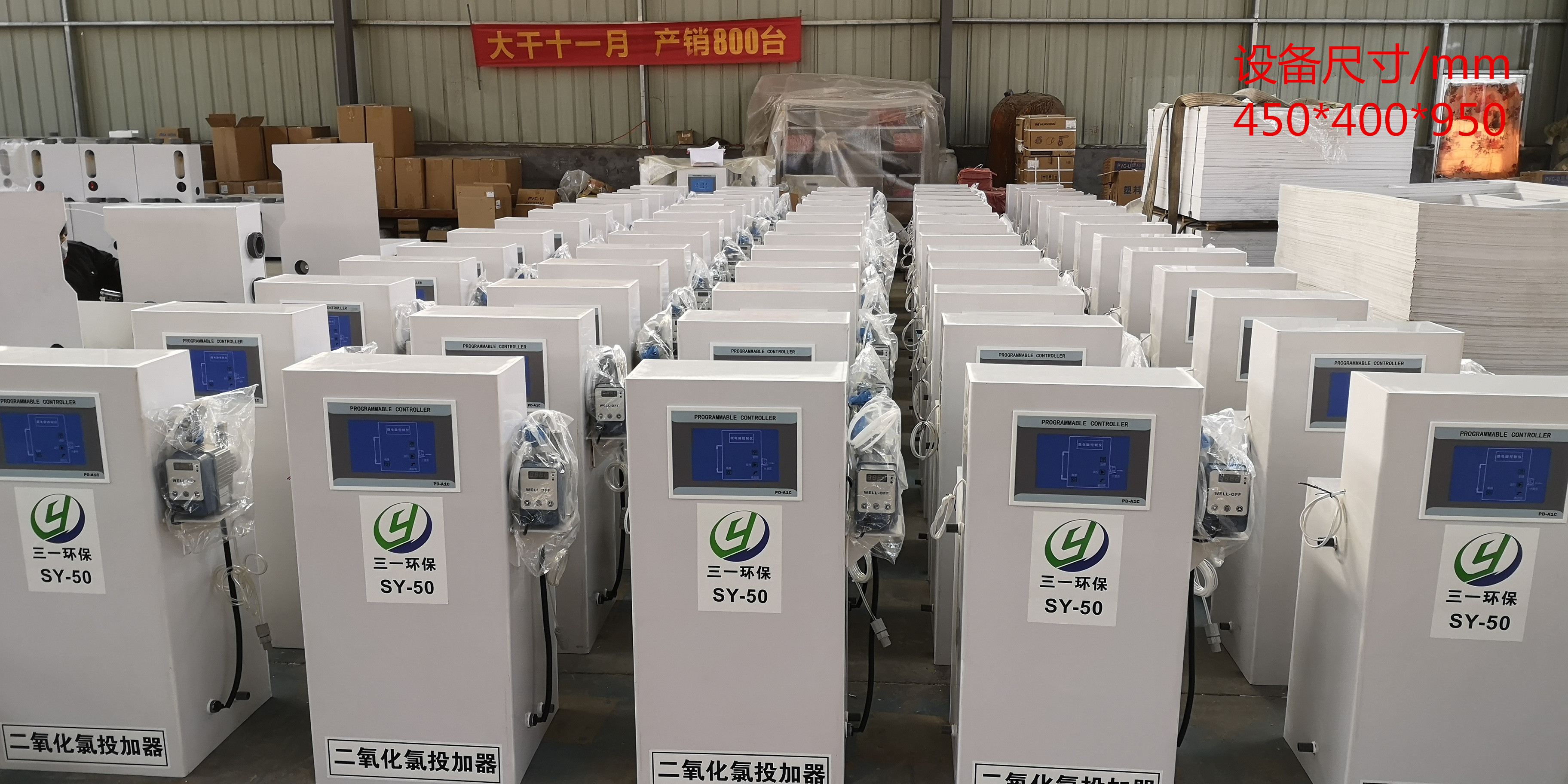 设备开机:将二氧化氯粉剂或片剂按比例配好的溶液加入至设备中,打开电源开关,按启动按钮,启动计量泵,根据药量大小调节计量泵脉冲。