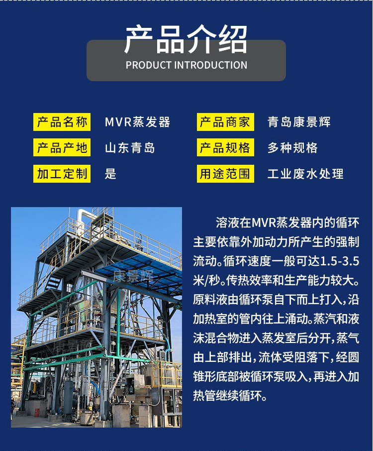 牌 康景辉 加工定制 是 加热方式 电加热,鲜蒸汽 处理量 0.5~60t/h 蒸发器温度 40-100℃ 操作压力 常压/真空 结构形式 立式 占地面积 ≥4*2.3*3.3m 蒸发每吨水耗电量 25-100KW 销售范围 全国 经营方式 自营 是否跨境资源 否 可售卖地 北京;天津;河北;山西;