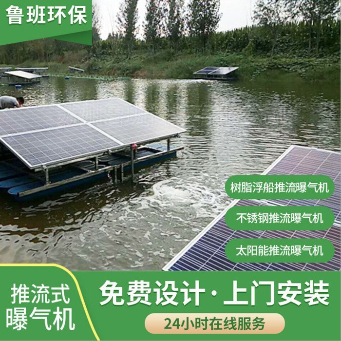 用于河道以及水塘的太阳能景观增氧系统,利用太阳能供电,驱动直流电机,通过水泵形成纵向与横向水流,将表层富氧水体与底层缺氧水体循环交替,达到为水体增氧的目的。喷泉式太阳能增氧系统,解决了普通河道增氧曝气机的供电瓶颈。系统由太阳能电池组件、控制系统、主机、浮体等部分组成,通过连接框架组成一体,或者主机与太阳能组件各自独立。成本低、见效快,安装方便,无需日常人工操作。 出水口可根据需要设计,适合于深水湖泊或水库。采用不锈钢和工程塑料等耐腐材料,使用寿命长。设备漂浮在水面,无需安装基础,不受水位影响。生态环保,无需投加任何化,药剂,无二次污染。 景观式太阳能增氧系统配合不同的喷泉喷头可以达到不同的景观效果和不同的增氧能力还可以选择不同的灯光搭配使体统可以在晚上也具有很高的景观使用效果照明,整个系统有着灵活的搭配方式可以根据不同的水域采用不同的搭配方式达到全天候的工作状态。采用漂浮安装方式,安装