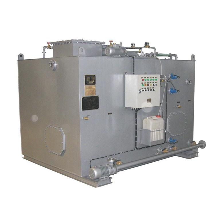 船上的原污水或污水处理装置处理后的固体残渣由进水管进入贮存柜,在柜内液体达到40%液位时,粉碎泵自动起动,使污水或固体残渣反复循环粉碎;在柜内液体达到80%时,自动发出报警信号警示船员。当污水或固体残渣粉碎到一定程度后,可将污水通过主甲板以上的国际排放接头送岸上接收设施或在非管制海域直接排放到舷外,实际内河生活污水零排放。本设备设有粉碎排放低位停止和高位报警功能,满足船员要求。