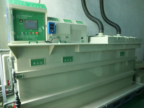 工作原理:电解缸中形成有空腔,多个隔离部件安装在空腔中并形成互相隔离的正极空间和负极空间;排气组件包括出气管、进液管和多个支管,进液管和出气管安装在电解缸上,出气管通过支管与正极空间连通,各支管与各正极空间一一对应设置;进液管和负极空间连通。
