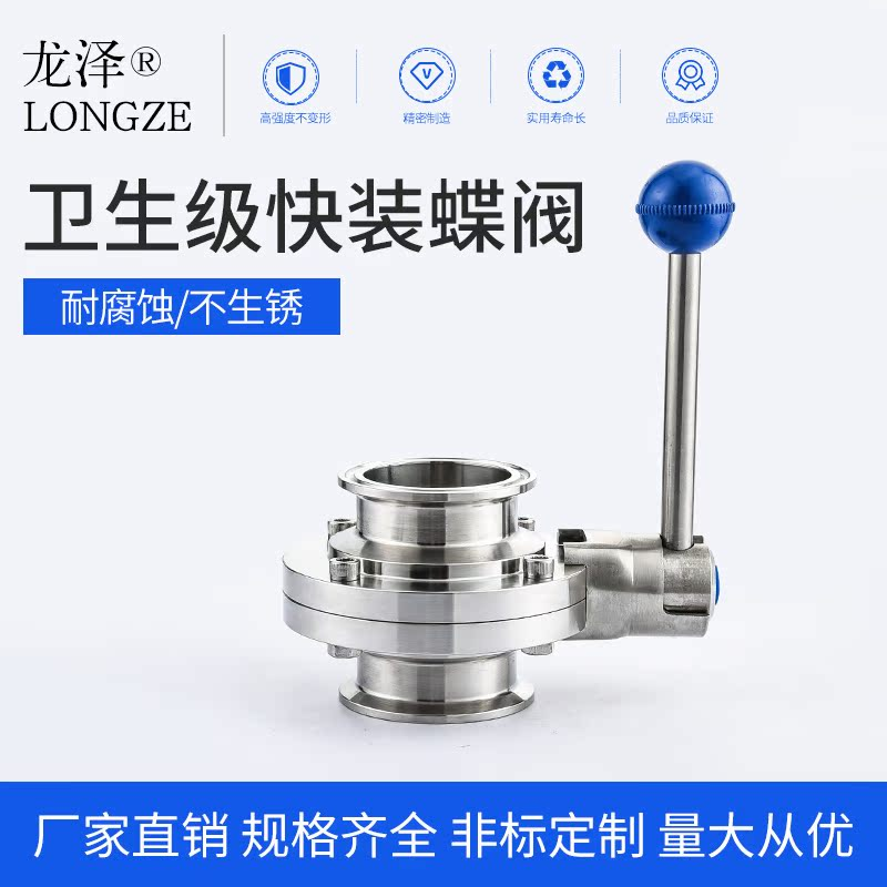 龙泽304不锈钢快装蝶阀精酿食品卫生级手动快接卡箍卡盘粉尘放料