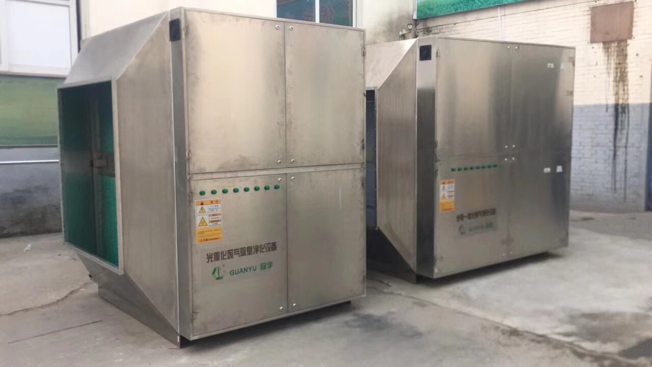 2) 第二步:经预处理后的废气,被抽引至光催化装置催化,在高能紫外灯光束的灯照射下,形成TiO2光催化氧化是活性羟基(•OH)和其他活性氧化类物质(•O2-,•OOH ,H2O2)共同作用的结果。在TiO2表面生成的•OH基团反应活性很高,具有高于有机物中各类化学键能的反应能,加上•O2-,•OOH ,H2O2活性氧化类物质的协同作用,能迅速有效地分解有机物。(主要作用:去废气中的容易被分解和氧化的废气成份(非甲烷总烃、苯类等VOC气体,并只有较好的消毒和除臭效果,使其达标排放);