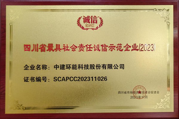 近期,中建环能在企业社会责任领域频传佳音,在企业信用建设方面表现优异。2023年12月,在四川省经信厅、四川省商务厅、四川省工商业联合会共同指导下,四川省市场经济诚信建设促进会评审发布了“2023四川省诚信示范企业认定名单”,中建环能荣膺“四川省最具社会责任诚信示范企业”称号,体现了主管...
