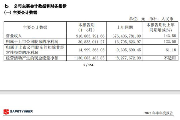 江苏赛福天集团股份有限公司发布2023 年半年度报告,实现营收91,686.38万元,同比增长143.58%,归母净利润3,083.30万元,同比增长123.50%。 报告称,公司营业收入增长 143.58%,主要是公司积极转型光伏新能源,电池片业务取得突破性进展,出货量大幅增加。归属于上市公司股东的净利润比上年同期增长 123.5...