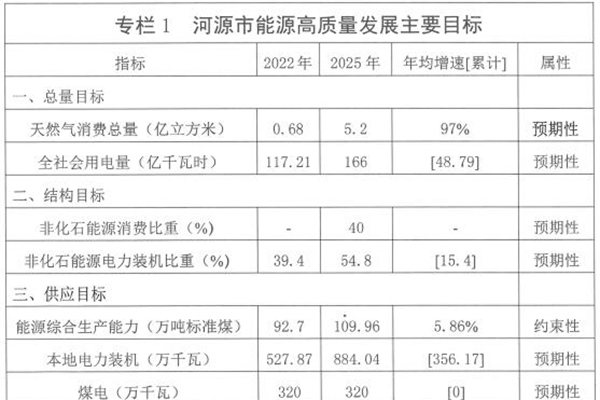 2023年8月11日,河源市发展和改革局发布《河源市推进能源高质量发展行动方案》,要求到2025年,全市可再生能源消费比重等关键指标继续保持省内领先地位,新能源产业和能源现代治理水平显著提升。市内电力装机容量达到884.04万千瓦,其中非化石能源发电装机占比达到55%左右。非化石能源成为能源消费增量的主体,消费比重达到40%左右。 ...