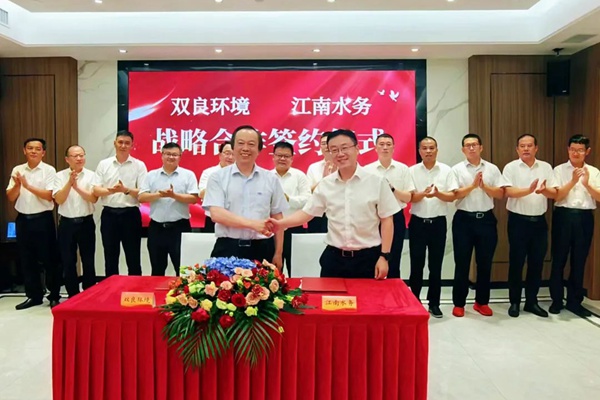 2023年8月7日,江苏江南水务股份有限公司与江苏双良环境科技有限公司签署战略合作协议,开启双方深层次合作新篇章。江南水务党委书记、董事长华锋,党委副书记、总经理池永,党委副书记高立,党委委员、副总经理曾武,双良集团党委书记、副总裁、双良环境总经理缪志强,双良集团副总裁、双良环境营销副总经理蒋少军,技术副总许亮及双方相关部门负责人出席...
