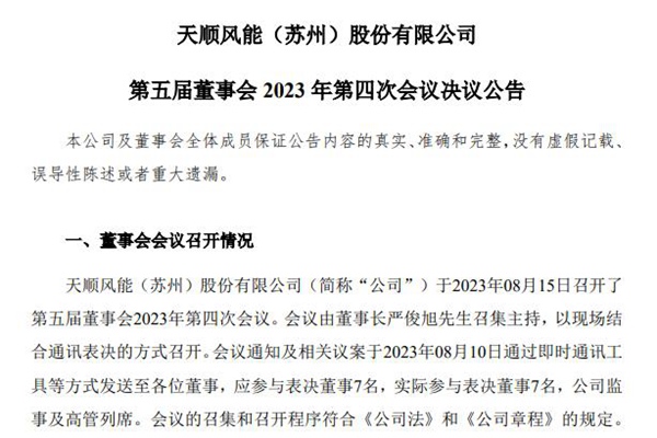 天顺风能(苏州)股份有限公司公布《第五届董事会 2023 年第四次会议决议公告》,审议通过了《关于开展德国 50 万吨风电海工基地建设项目的议案》。 天顺风能表示,为进一步完善公司海上风力发电产能布局,实现“双海”业务布局战略,公司决定开展德国 50 万吨风电海工基地建设项目,在德国库克斯港新建海上风电部件生...