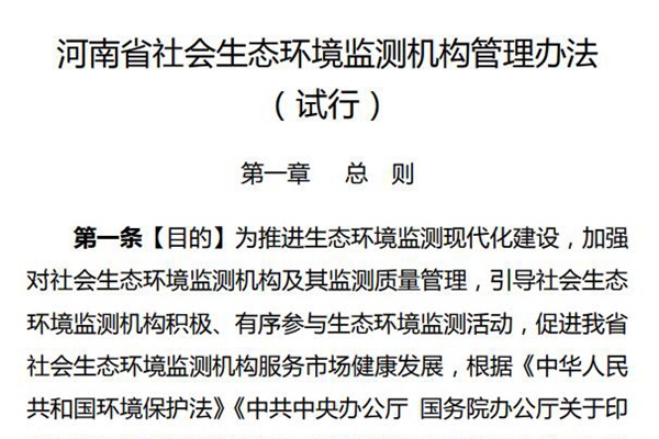 河南省生态环境厅办公室关于印发《河南省社会生态环境监测机构管理办法》(试行)的通知 各省辖市、济源示范区生态环境局,郑州市生态环境局郑州航空港经济综合实验区分局: 为进一步加强我省生态环境监测机构监测质量监管,切实规范监测行为,不断提升监测数据质量,促进我省生态环境监测社会化服务市场健康发展,有效支撑精准治污、科学治污、依法治污,按照...
