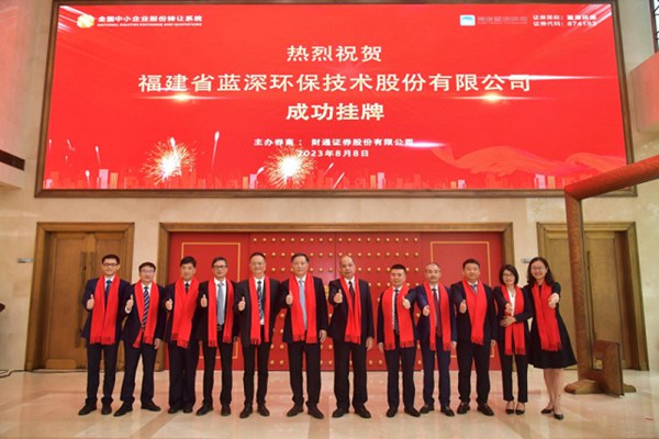8月8日,泉州水务集团权属企业——福建省蓝深环保技术股份有限公司(证券简称:蓝深环保 证券代码:874153)在全国中小企业股份转让系统(简称新三板)举行挂牌敲钟仪式。随着钟声敲响,福建蓝深环保以新格局、新面貌,开启了资本市场的新篇章,成为泉州市第一家市属国企新三板挂牌公众公司。 泉州市国资委党委书记、主任黄...