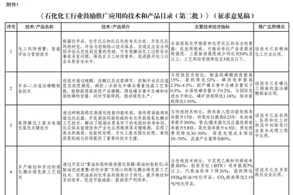 2023年6月25日,工业和信息化部原材料工业司发布《石化化工行业鼓励推广应用的技术和产品目录(第二批)》(征求意见稿),合计纳入了28项。征求意见时间截至2023年7月10日。 总的来看,这些鼓励推广应用的技术和产品,大多都跟节能减排息息相关。 化工风险预警、智能评估与管控技术:单位产品资源消耗强度、三废排放强度减少均达到10%...