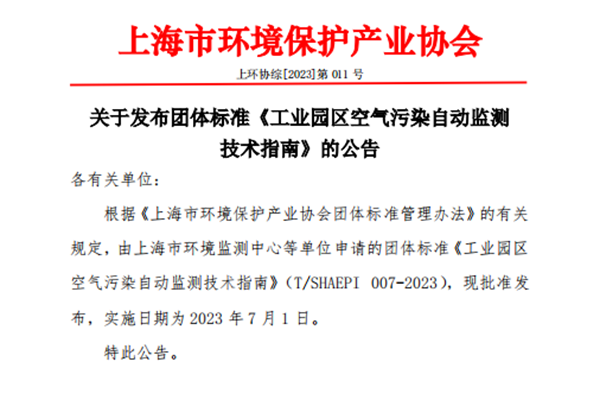 2023年6月1日,由武汉晟诺仪器科技有限公司等单位参编的团体标准《工业园区空气污染自动监测技术指南》正式发布,实施日期为2023年7月1日。 技术指南规定了工业园区空气污染自动监测网络的构成、设计、建设、运行质量管理和数据应用等技术要求。适用于工业园区管理部门或生态环境部门对工业园区及周边环境敏感目标的空气污染自动监测、预警、分析...