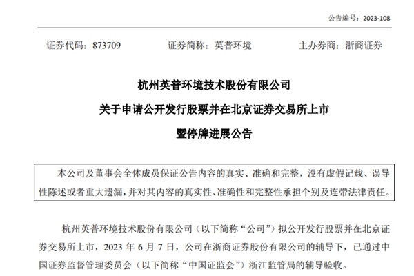 2023年6月12日,水务公司水韵环保主动撤回首次公开发行股票并在主板上市的申请获深证证券交易所通过,同日,另一水处理相关企业,杭州英普环境技术股份有限公司(下称“英普环境”)发布《关于申请公开发行股票并在北交所上市辅导验收完成提示性公告》,公告提示公司于2023年6月9日通过辅导验收。 6月21日,英普环境...