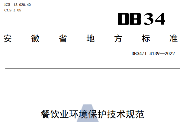 2022年7月,安徽省市场监督管理局发布了安徽省地方标准《餐饮业环境保护技术规范》(编号DB 34/T 4139-2022),2022年4月29日起实施。 相关资料下载: 《餐饮业环境保护技术规范》DB34_T 4139-2022.pdf ...