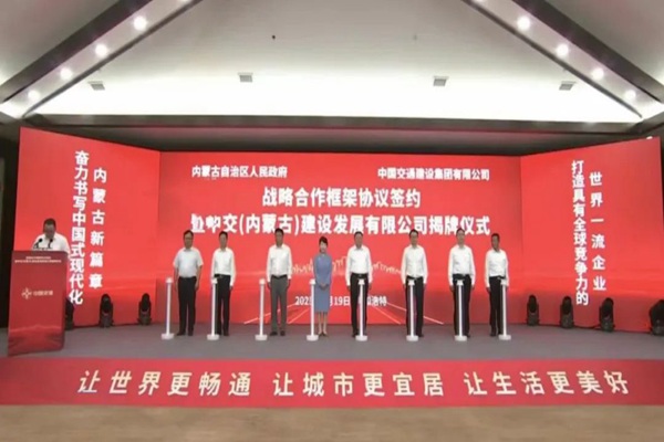 2023年6月19日,中交集团与内蒙古自治区政府在呼和浩特市举行战略合作框架协议签约暨中交(内蒙古)建设发展有限公司揭牌仪式。中交集团党委书记、董事长王彤宙,党委副书记、总经理王海怀;内蒙古自治区党委副书记、自治区主席王莉霞,自治区副主席么永波出席仪式。 在王彤宙与王莉霞的共同见证下,王海怀和么永波代表双方签订战略合作框架协议。根据...