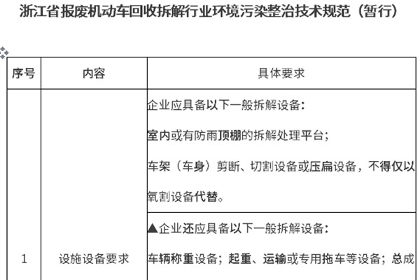 2023年6月19日,浙江省生态环境厅网站发布《浙江省报废机动车回收拆解行业环境污染整治工作方案》全文,明确将聚焦报废机动车回收拆解行业突出性、普遍性和反复性污染问题,精准、科学、依法实施全行业环境污染整治,推动全省报废机动车回收拆解行业产能布局均衡化、生产经营规模化、工艺流程自动化、污染排放清洁化、拆解产物资源化、拆解作业规范化、报...