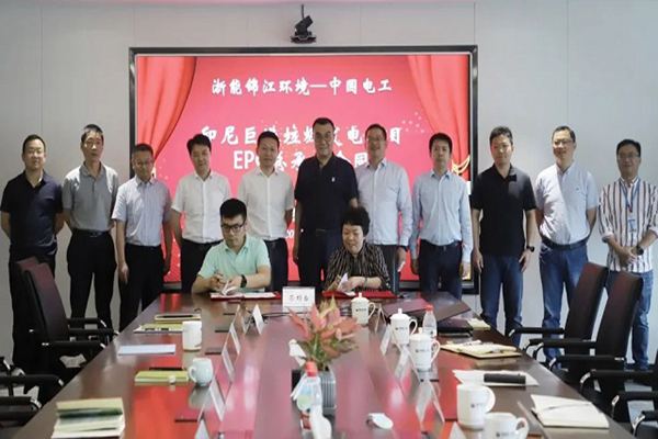 近日,中国电工与印尼绿色能源有限公司(IGP)正式签署了印尼巨港垃圾焚烧处理项目EPC总承包合同。IGP公司全资母公司浙能锦江环境控股有限公司董事长韦东良、常务副总经理王武忠、总工程师戚亮及高管团队,中国电工总经理吴贵生、副总经理李志刚及第二事业部相关人员参加了签约仪式。 印尼巨港垃圾焚烧处理项目位于印尼南苏门答腊岛东部穆西河沿岸的...