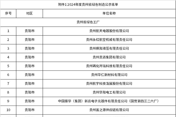 2024年度贵州省绿色制造名单公示 为促进工业绿色低碳发展,扎实推进绿色制造专项行动,按照《省工业和信息化厅关于组织申报2024年度贵州省绿色制造名单的通知》要求,经企业和开发区申报、各市(州)推荐、专家评审及征求有关部门意见,现将拟确定为2024年度贵州省绿色制造单位的名单,予以公示。如有异议,请在公示期间向我们反馈意见。 公示时间...