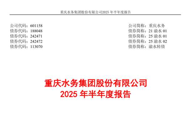 重庆水务集团股份有限公司(简称:重庆水务)近日发布《2025年半年度报告》。报告期内,重庆水务实现营业总收入35.19亿元,同比增长7.16%;归母净利润4.58亿元,同比增长10.06%;扣非净利润3.96亿元,同比增长18.69%;经营活动产生的现金流量净额为9.81亿元,同比增长109.43%。重庆水务2025年半年度分配预案为...