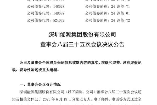 深圳能源集团股份有限公司(简称:深圳能源)公告称,公司于2025年6月30日上午以通讯表决方式召开董事会八届三十五次会议,审议通过了《关于聘任副总裁的议案》、《关于投资建设妈湾电厂升级改造煤电环保替代一期工程项目的议案》、《关于投资建设封开县城镇环卫一体化及绿色循环产业特许经营项目的议案》等等。 (一)审议通过了《关于聘任副总裁的议...