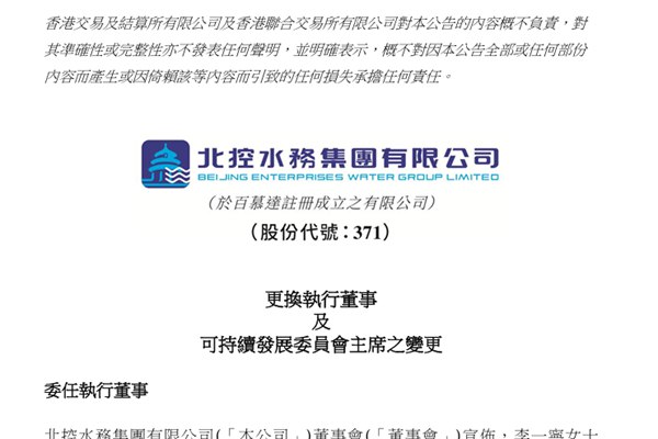 北控水务集团有限公司(简称:北控水务集团)近日公告称,自2025年12月18日起,委任李一宁女士为公司执行董事。 李一宁女士,45岁,为一间于香港联合交易所有限公司(“联交所”)主板上市之公司北京控股有限公司副总裁,为高级经济师。李女士毕业于澳大利亚悉尼大学物流管理学,获物流管理硕士学位。李女士于二零一一年七...