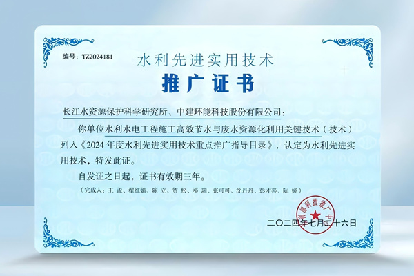 中国水利科技推广网截图 近日,水利部《2024年度水利先进实用技术重点推广指导目录》正式发布,中建环能与长江水资源保护科学研究所共同申报的“水利水电工程施工高效节水与废水资源化利用关键技术”先进实用技术成果通过评审,成果入选。图源:中建环能官微 成果针对施工用排水粗放、废水处理成本高、资源化利用难度大等瓶颈和挑...