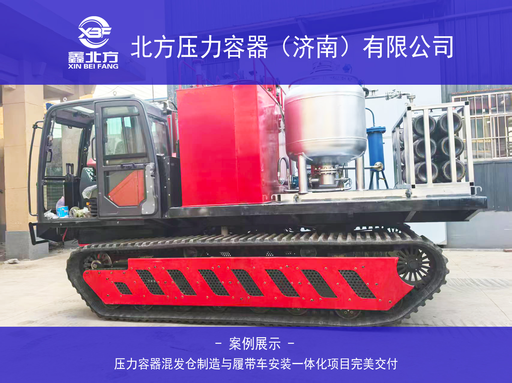 2025年6月6日,在北方压力容器(济南)有限公司位于山东济南章丘区的生产厂区内,一项专为山东省某知名新材料企业定制的特殊材料制备输送的移动式履带车式混发仓工作单元顺利交付。 本项目从2025年3月份初步实施,历经3个月的时间,我方技术工程师经过与业主 方多次会议探讨、现场勘察、图纸修改后,*终确定技术实施方案,由我司完成定制化生产及装...