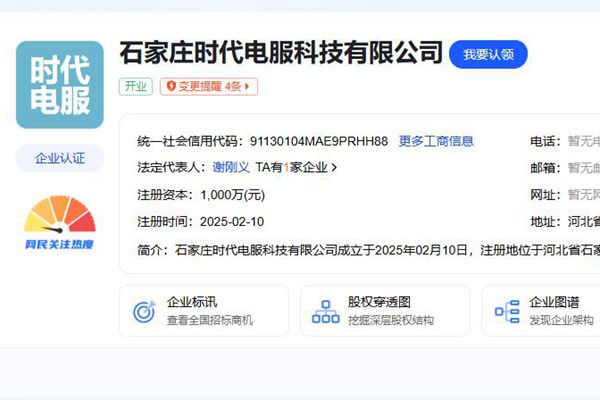 近日,石家庄时代电服科技有限公司正式成立,法定代表人为谢刚义,注册资本1000万人民币,经营范围含新能源汽车整车销售、新能源汽车换电设施销售、新能源汽车电附件销售、智能控制系统集成、电气安装服务等。图源:爱企查 股权全景穿透图显示,该公司由时代电服科技有限公司全资持股,后者为宁德时代全资子公司。...