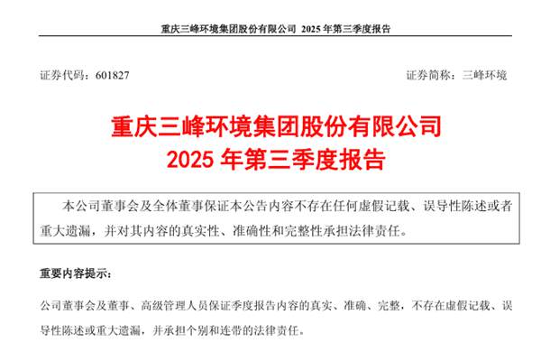 重庆三峰环境集团股份有限公司(简称:三峰环境)近日发布《2025年第三季度报告》。2025年前三季度,三峰环境实现营业收入为41.55亿元,同比下降8.03%;归母净利润为11.04亿元,同比增长9.31%;扣非归母净利润为10.62亿元,同比增长6.44%;基本每股收益0.66元。图源:三峰环境公告 三峰环境主营业务涉及垃圾焚烧发...