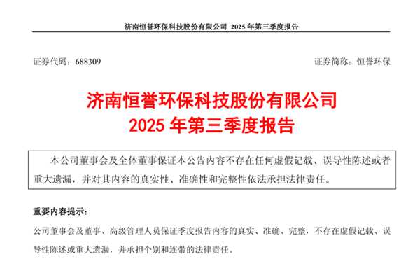 济南恒誉环保科技股份有限公司(简称:恒誉环保)近日发布《2025年第三季度报告》。2025年前三季度,恒誉环保实现营业收入1.88亿元,同比大增191.99%;实现归母净利润1446.17万元,同比扭亏为盈。其中,第三季度恒誉环保实现营业收入6349.27万元,同比增长107.72%;实现利润总额1048.20万元,同比增长45424...