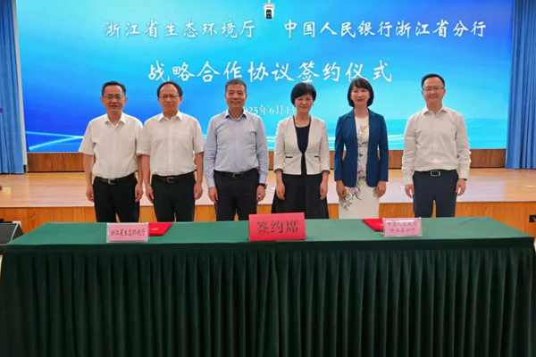 为贯彻落实《关于发挥绿色金融作用服务美丽中国建设的意见》,6月13日,浙江省生态环境厅与中国人民银行浙江省分行在杭州签订绿色金融战略合作协议。生态环境部综合司副司长张华平、中国人民银行信贷市场司副司长杨虹应邀致辞,省生态环境厅党组书记、厅长王敏,中国人民银行浙江省分行党委书记、行长刘玉苓出席签约仪式并讲话。浙江省生态环境厅副厅长叶俊,...