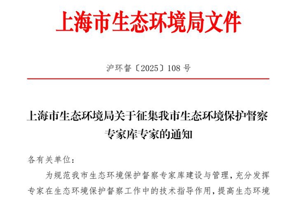 上海市生态环境局关于征集我市生态环境保护督察专家库专家的通知沪环督〔2025〕108号 各有关单位: 为规范我市生态环境保护督察专家库建设与管理,充分发挥专家在生态环境保护督察工作中的技术指导作用,提高生态环境保护督察工作的科学性和精准性,保障生态环境保护督察工作高质量实施,根据《生态环境保护督察工作条例》《上海市生态环境保护督察工作...