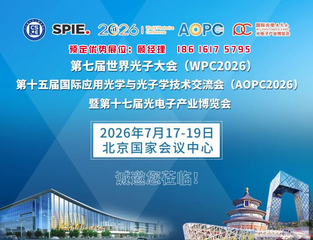 2026第七届世界光子大会 2026第十五届国际应用光学与光子学技术交流会 2026第十七届光电子产业博览会 咨询:顾经理18616175795 微信号:309349317 时间:7月17-19日地点:北京国家会议中心二期 主办单位 中国光学工程学会 欧洲光电产业协会 德国工程院 德国夫琅禾费研究所 俄罗斯激光协会 日本光学学会 新加坡...