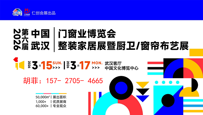 2026第6届中部(武汉)整装家居门窗暨厨电卫浴展 定档2026年3月15-17日,在武汉客厅·中国文化博览中心隆重举办,充分发挥湖北的产业优势和九省通衢的地理位置优势,拉动产业经济,撬动整个家居建材行业的大发展。 2026中国武汉门窗业博览会武汉整装家居展暨厨卫/窗帘布艺展 时间:3月15-17日 地点:武汉客厅&mid...