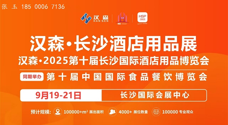 2025 0届湖南(长沙)国际酒店用品博览会 The 10th Hunan (Changsha) International Hotel Supplies Expo 2025 2025年9月19-21日 长沙国际会展中心(国展路118号) 展会规模 1000+参展企业 100,000㎡+展示面积 100,000+专业观众 承办单位 北京汉...