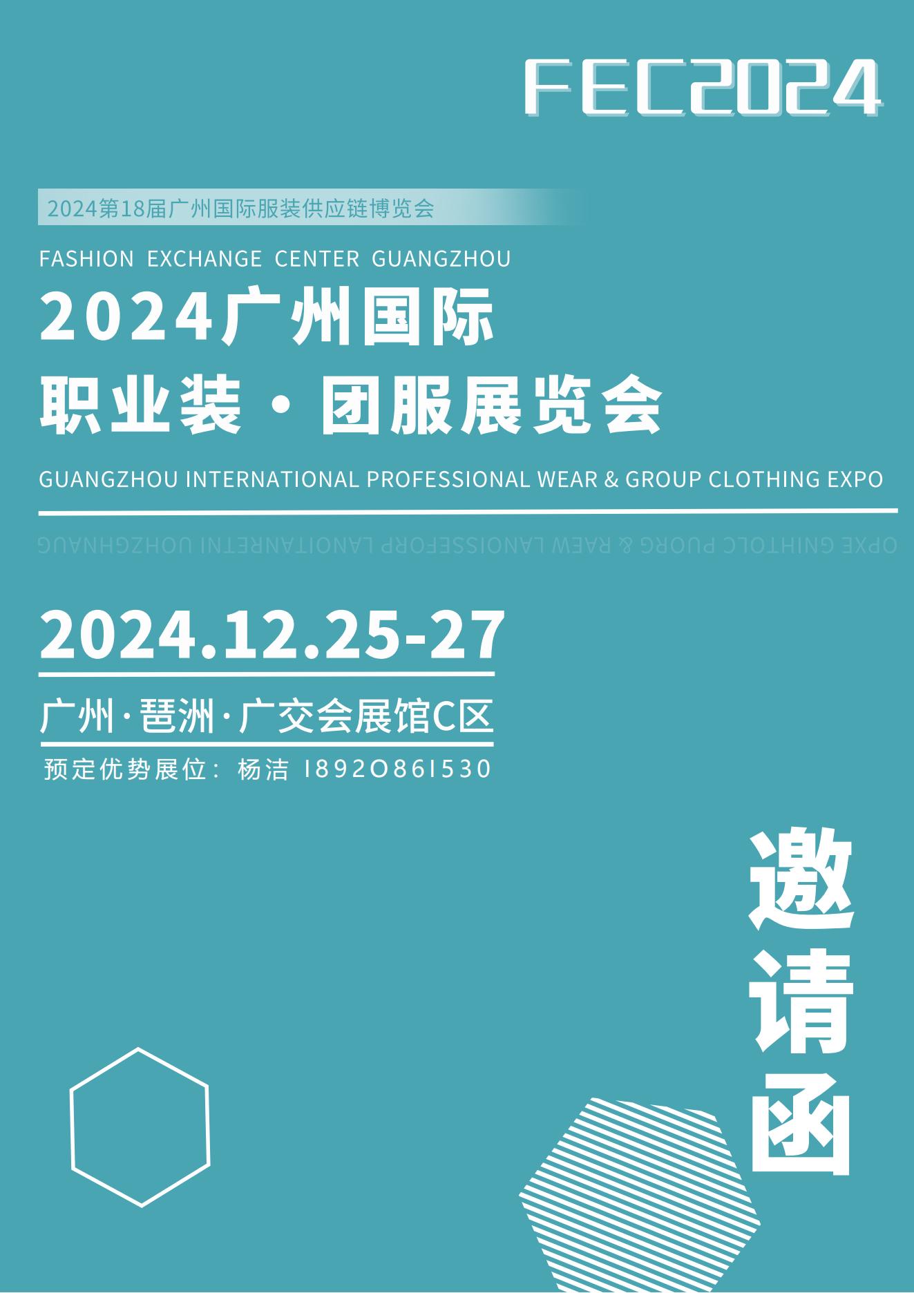 FASHION EXCHANGE CENTER GUANGZHOU 2024广州国际职业装●团服展览会 GUANGZHOU INTERNATIONAL PROFESSIONAL WEAR & GROUP CL OTHING EXPO 2024.12.25-27广州.琶洲.广交会展馆C区 立足湾区、协同港澳、抓住机遇、共创未来 ...