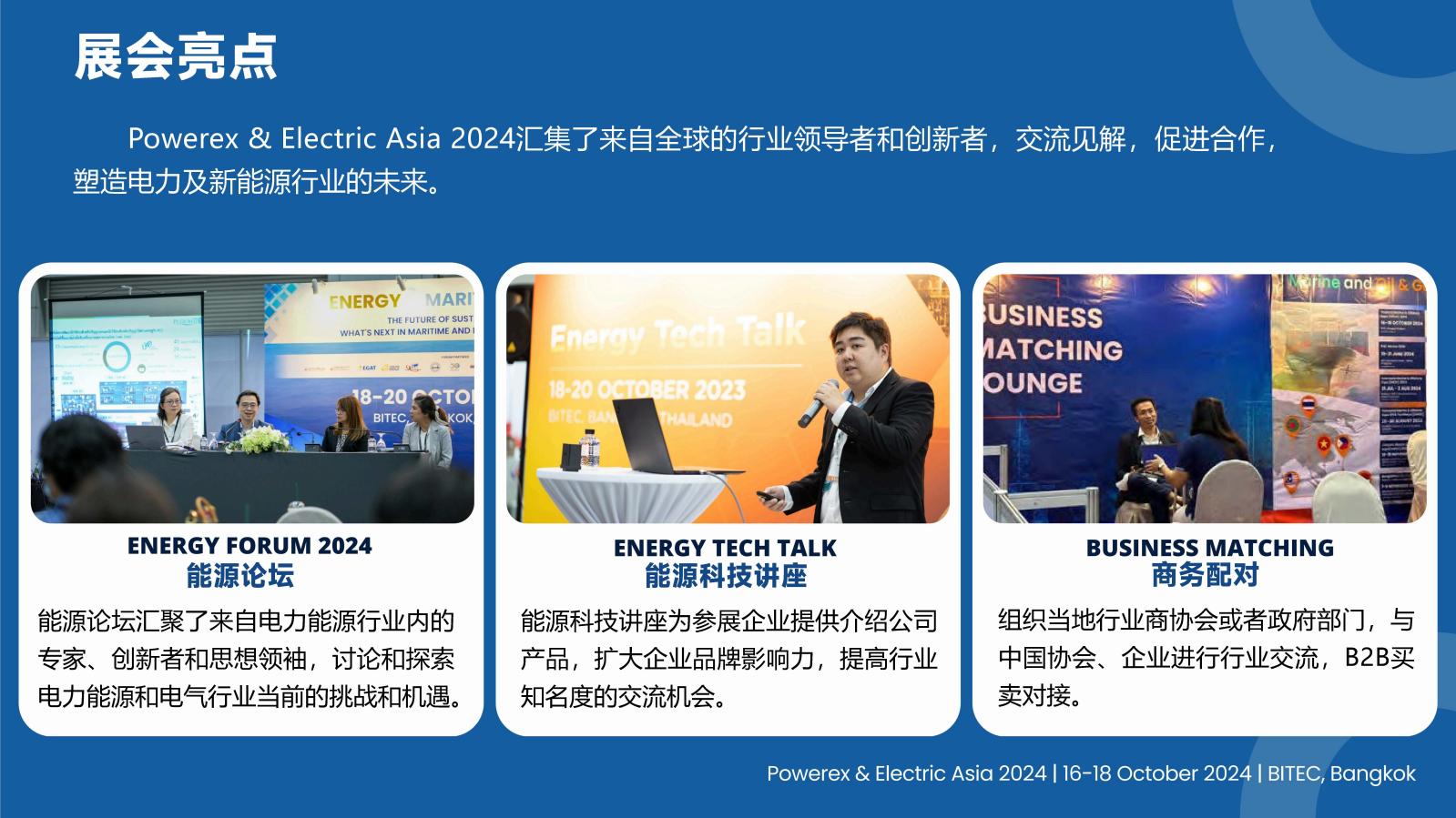 2024年亚洲(泰国)国际太阳能光伏与智慧能源展 ▏太阳能光伏 ▏储能 ▏氢能 ▏生物能源 ▏风能 ▏智慧能源 ▏电网 ▏电力电气 ▏ 能源部批复东盟重点展会 展会时间:2024年10月16-18日 展会地点:泰国.曼谷BITEC会展中心 主办单位:新加坡Fireworks展览集团 组织单位:武汉柏翰展览有限公司(Fireworks Ch...