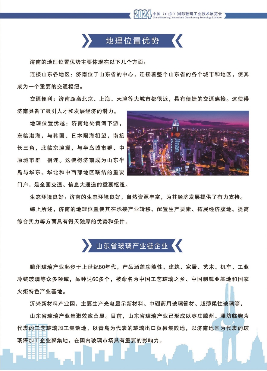 2024山东玻璃展 2024山东(济南)玻璃工业展2024山东玻璃机械展 2024玻璃工业技术展 时间:2024年5月26日-5月28日 地点;山东国际会展中心 为玻璃行业提供一个专业、高效、国际化的交流平台,全力打造”立足山东 服务全国、面向世界”玻璃行业品牌盛会。 邀请函 ——助推山...