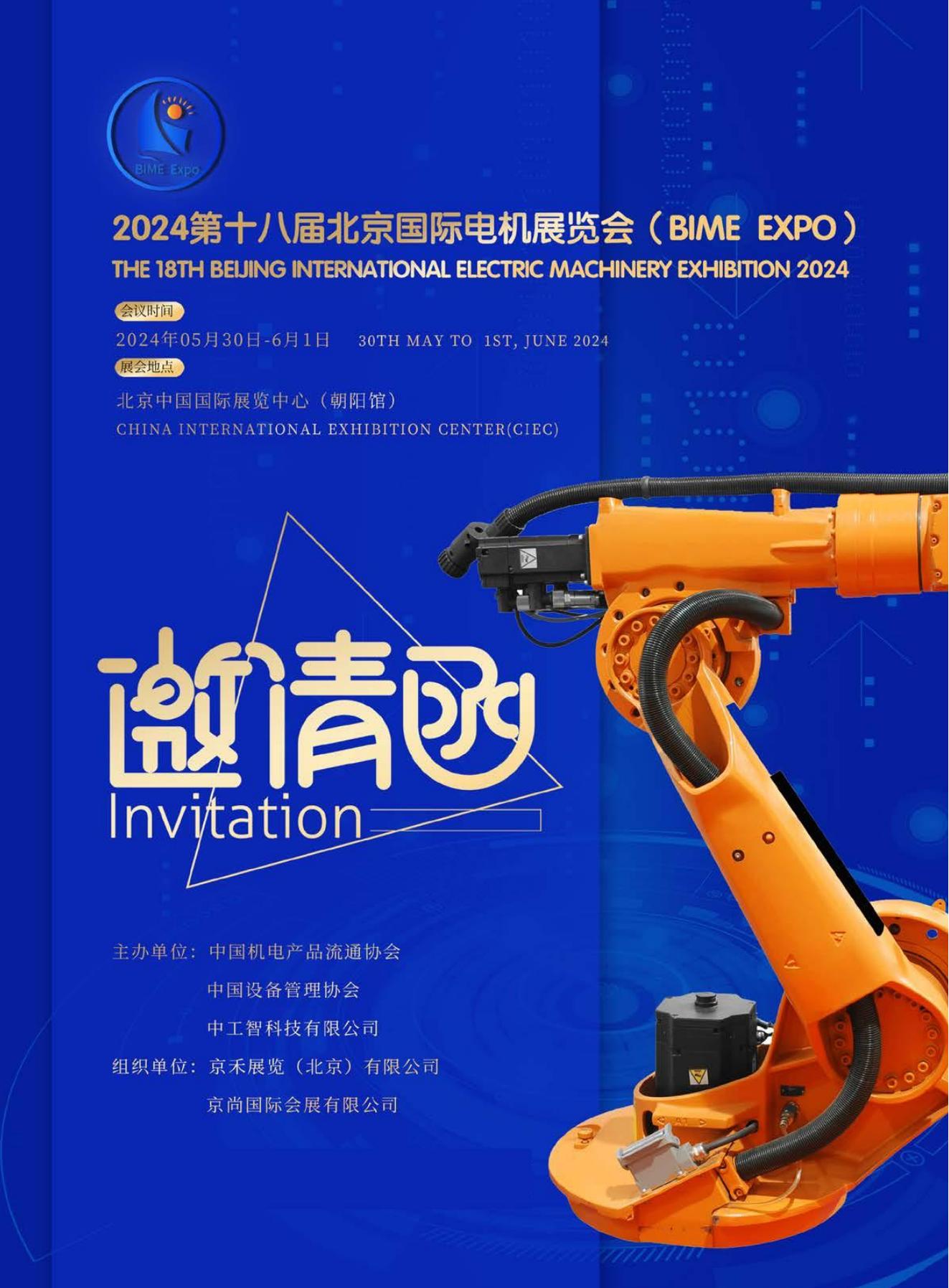 2024第十八届北京国际电机展览会(BIMEExpo) The 18th Beijing International Electric Machinery Exhibition 2024 时 间:2024年05月30日-6月1日 地 点:北京中国国际展览中心(朝阳馆) Venue: China International Exhibiti...