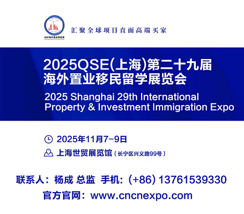2025QSE上海第二十九届海外置业移民留学展览会 2025 Shanghai 29th International Property & Investment Immigration Expo 海外房产| 投资移民 | 出国留学 2025年11月7-9日 上海世贸展馆 展会概况 伴随着中国经济迅速崛起,海外置业和投资移民已成为...