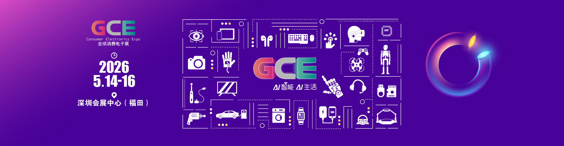 2026全球消费电子展暨深圳国际消费电子展览会 时间:2026年5月14日-16日 地点:深圳会展中心(福田区福华三路111号) 关于展会 2026全球消费电子展暨深圳国际消费电子展览会“GCE”,致力于为全球消费电子生产企业、代理商、国内国际采购商、零配件商、相关产业服务供应商等打造全面、集中的一站式采购交易合...