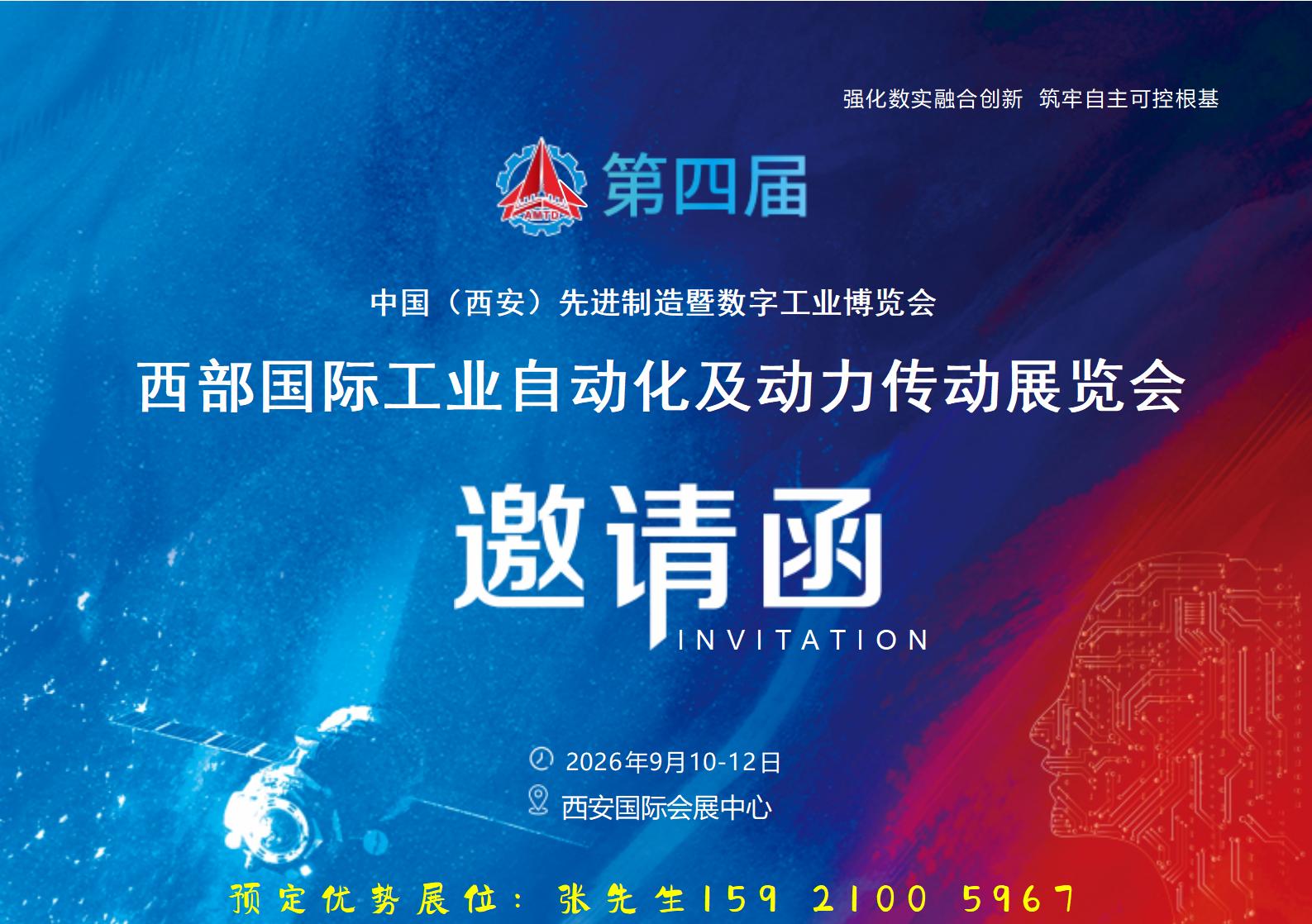 强化数实融合创新 筑牢自主可控根基 2026第四届中国(西安)先进制造暨数字工业博览会 西部国际工业自动化及动力传动展览会 2026年9月10-12日西安国际会展中心 大会背景 当前,陕西省先进制造业已迈上万亿元级规模,正加速向两万亿⽬标迈进。在全省部署的34条重点⼯业产业链中,航空、航天、新能源、数控机床、⼯业⾃动化等先进制造...
