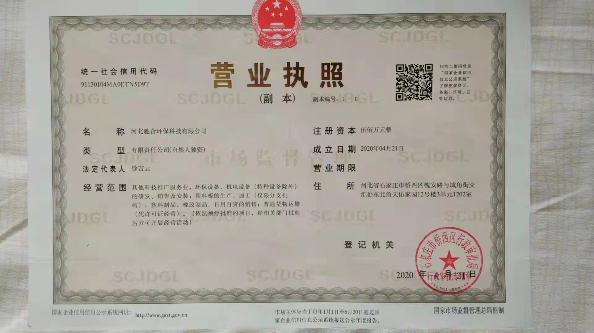营业执照注册号: